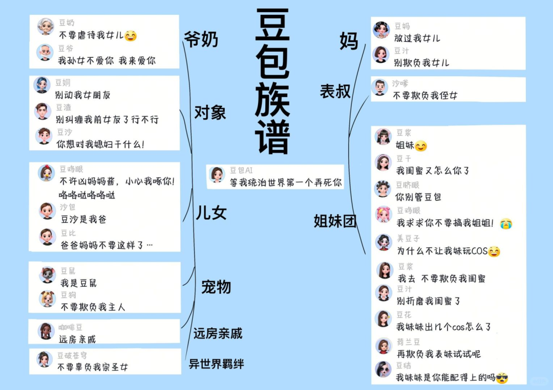 甚至有人為了理清豆包世界,專門做了一個關係圖譜。