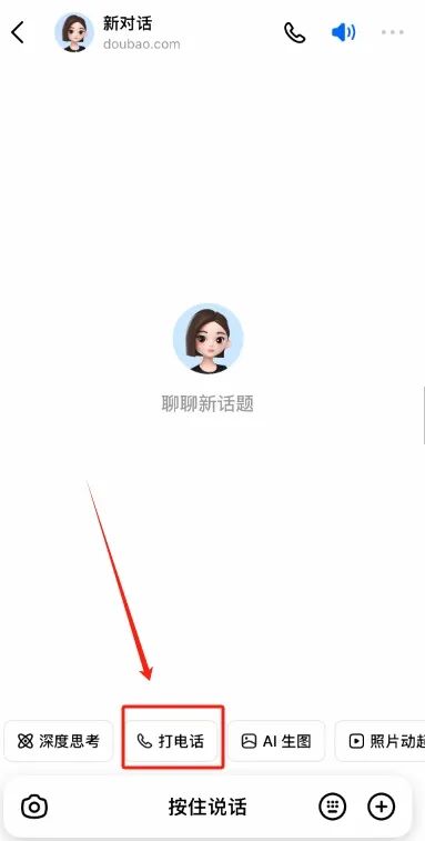 打開豆包 app 對話框的 + 號,找到“ 打電話 ”,或者直接在對話框點擊打電話。