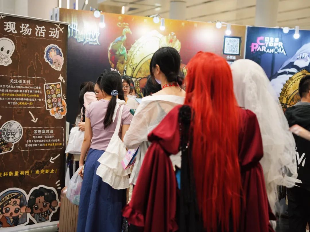 雖製品散是漫天星,但熱度依舊不減。在幾個有熱門CP本子出售的攤位前,隊伍從早上八九點開始一直排到了中午,以至於稍微晚來一些的遊客形容,場面相當恐怖:“攤位這麼分散,結果我逛到的時候都早早售空了。”