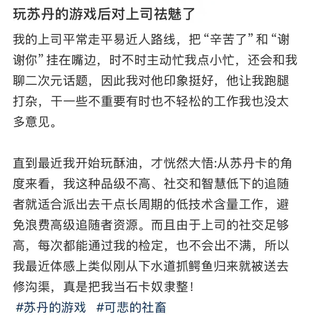 “權力關係內在於一切關係形式之中”,這句略顯抽象的話被遊戲以蘇丹卡做出了具象化的詮釋。以至於有玩家在入坑後,成功對上司祛魅: