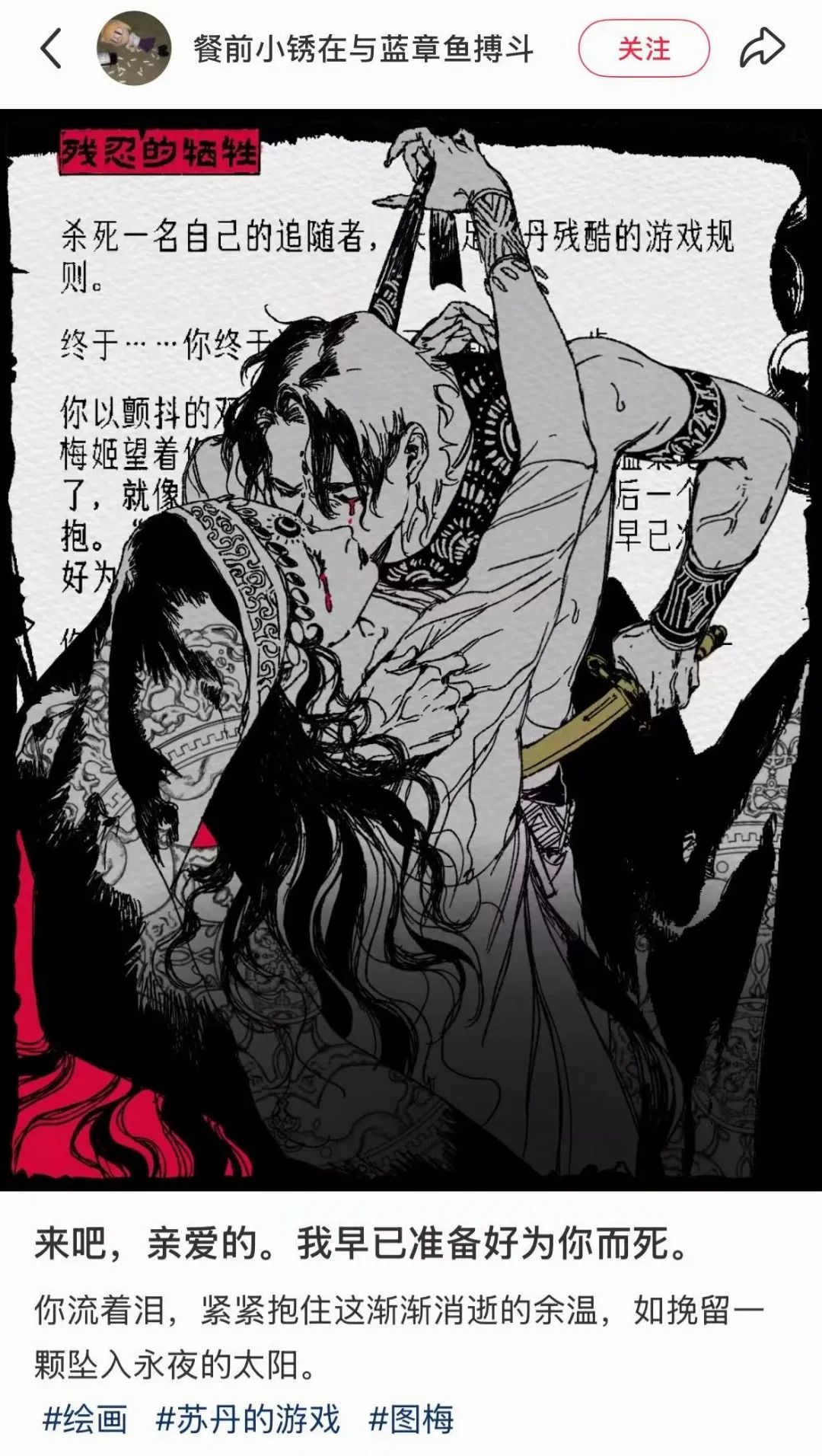 一位二創作者告訴我,眼下所謂的“潔癖”,讓大家在二創的時候都有點束手束腳的,但搞《蘇丹的遊戲》的同人時,這種顧慮就小了很多:“畢竟都玩酥油了,你不雜食是怎麼玩下去的?”