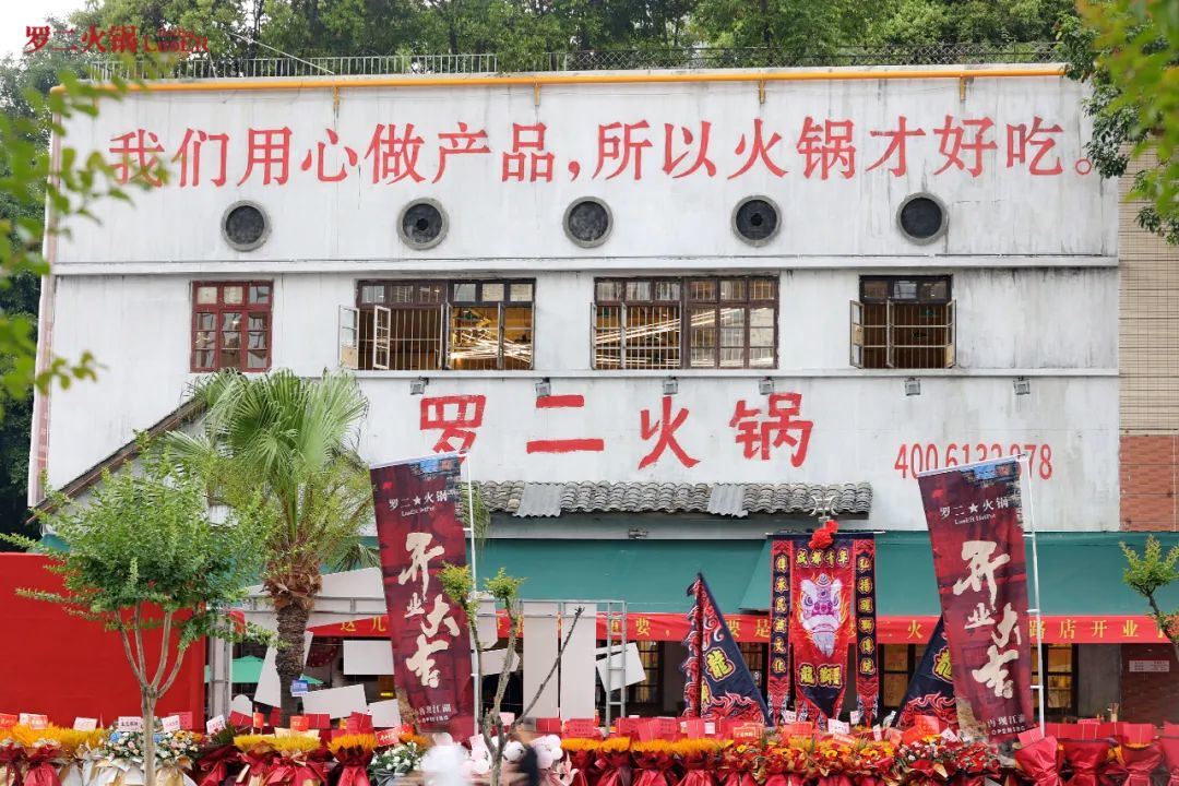 2021年,創始人劉凡提着一桶50元買來的紅漆,爬上腳手架,親自寫下“羅二火鍋”四字招牌。