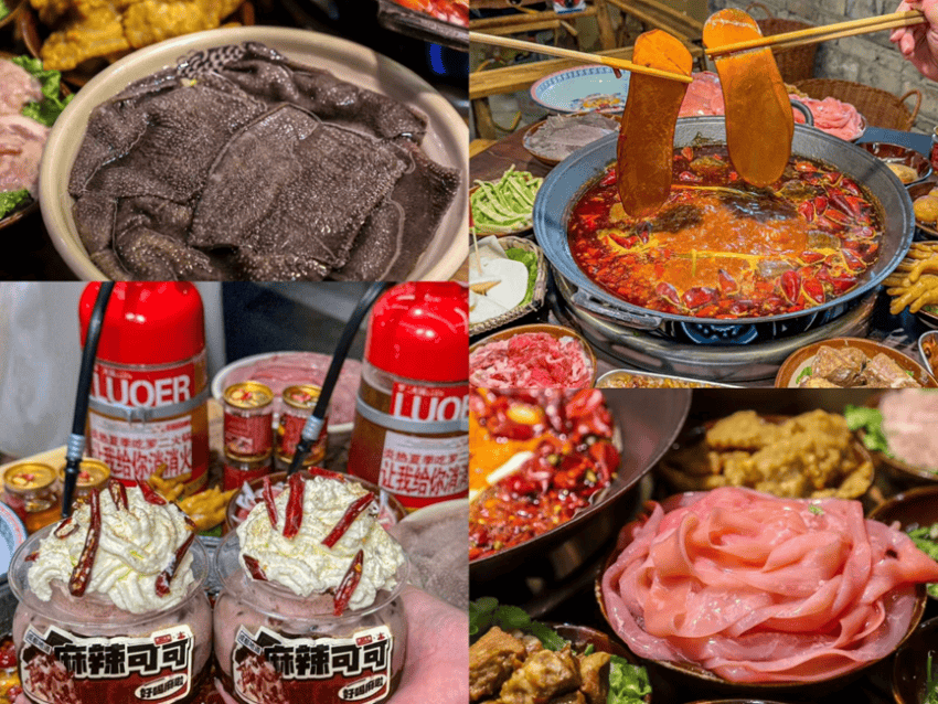 關於口味,羅二火鍋的菜單總能給人新鮮感,比如曾推出與康師傅聯名的耙牛肉火鍋方便麪,與茶茶巫聯名的麻辣可可,與成都非遺點心協盛隆聯名的火鍋拿破崙等。