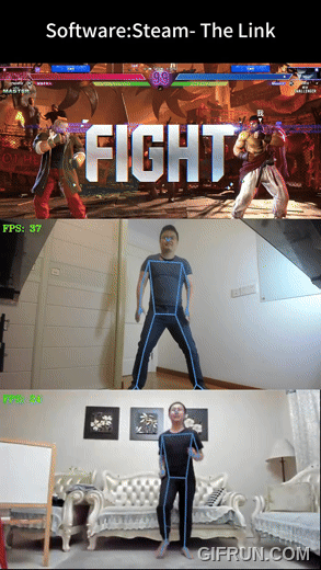 別看The link的邏輯簡單,但它這種純靠視覺動捕玩體感的思路,帶來了很多好處,首先The link完全不吃硬件,你不再需要購買一堆稀奇古怪的外設,然後像穿盔甲一樣套在身上,只需要一個攝像頭以及麥克風就可以使用,身為開發者的Masonx,甚至推薦你先用手機攝像頭試試,其實也湊合能玩,這是經濟和身體的雙重減負,大大降低了體感遊玩的門檻。