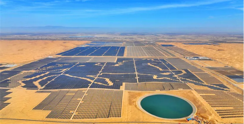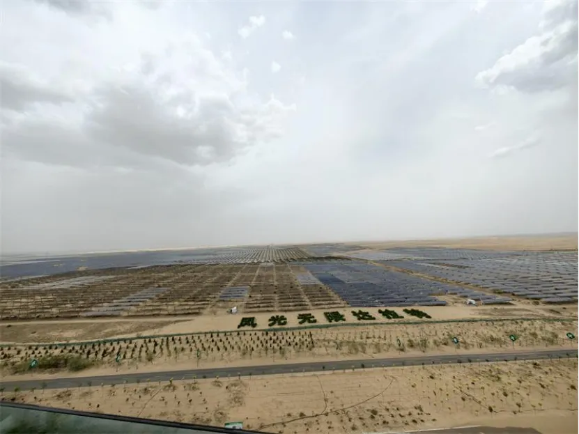 在內蒙古庫布其沙漠腹地,一片深藍色的“海洋”正悄然改變着大地的底色。數萬塊光伏板如波浪般起伏,將灼熱的陽光轉化為電流,而板下的沙土中,苜蓿與甘草舒展嫩芽——這不是科幻電影中的場景,而是中國西部沙漠中正在演繹的綠色奇蹟。