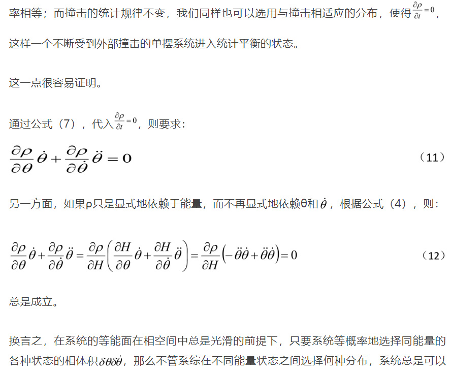 如果單擺不斷受到外來撞擊,我們可以認為系統從一個能量範圍的保守系統系綜跳到了另一個能量範圍的保守系統的系綜。那麼,如果針對某個能量值選擇的相空間所有微元的概