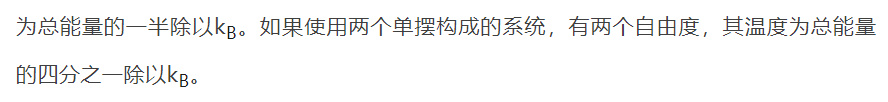 仍以單擺為例。顯然一個單擺構成的系統,只有一個自由度,其温度即為其平均動能,即