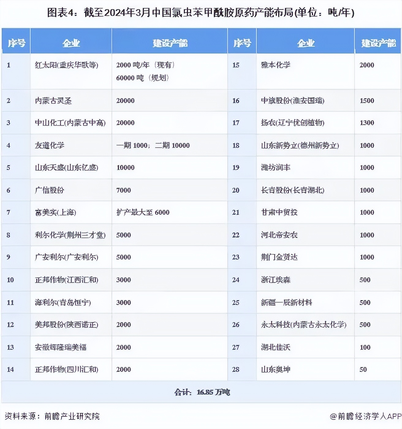氯蟲苯甲酰胺原料產能佈局 資料來源:前瞻產業研究院