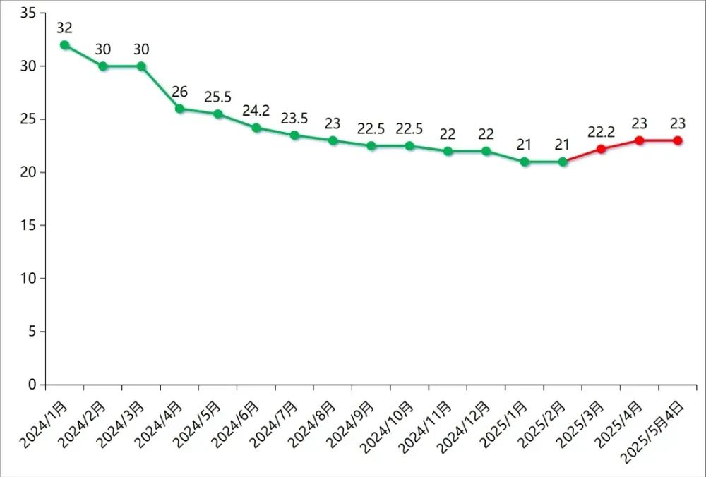 截至2025年5月4日的國內氯蟲苯甲酰胺原藥價格走勢