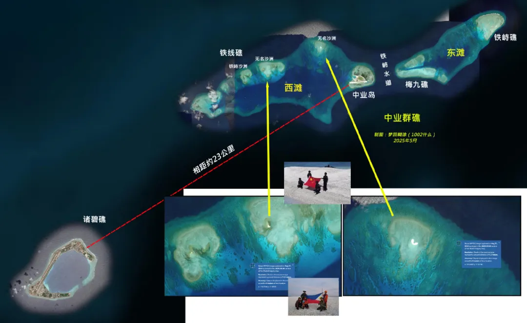 鐵線礁的對峙,本質是一場圍繞南海戰略要衝的控制權爭奪。這座面積僅 0.03 平方公里的珊瑚礁,地處中業島(菲佔)與渚碧礁(中國實控)之間,退潮時露出的礁盤不僅能部署觀察站監控中業島,更可切斷菲方對中業島的補給線。中方通過常態化巡航和軍事部署,正逐步壓縮菲方的非法活動空間。