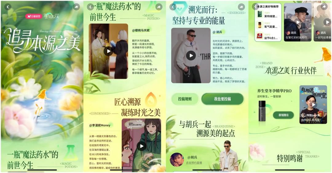 跳出了溯源傳播的舊敍事,#追尋本源之美 不僅以豐富多元的溯源內容,滿足了用户“既要功效理性、又要情感價值”的多元需求,話題總計實現5.2億次播放、H5 頁面超50萬的互動,同時,包括肌膚未來、綻妍、養生堂YOSEIDO等美妝護膚品牌也借力溯源找到了提升軟實力的新路徑。
