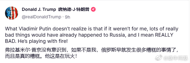 由於前兩天發嗲普京沒回應,特朗普又開始噴普京玩火了,並且明示自己對普京很重要