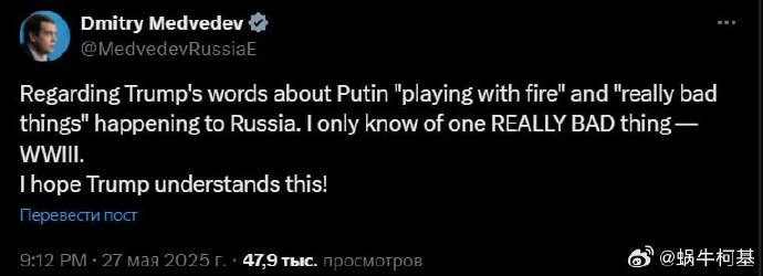 姐夫回應特朗普説普京玩火一事:“玩火?非常糟糕的事情?我只知道一件真正糟糕的事情,第三次世界大戰。我希望特朗普明白這一點!”