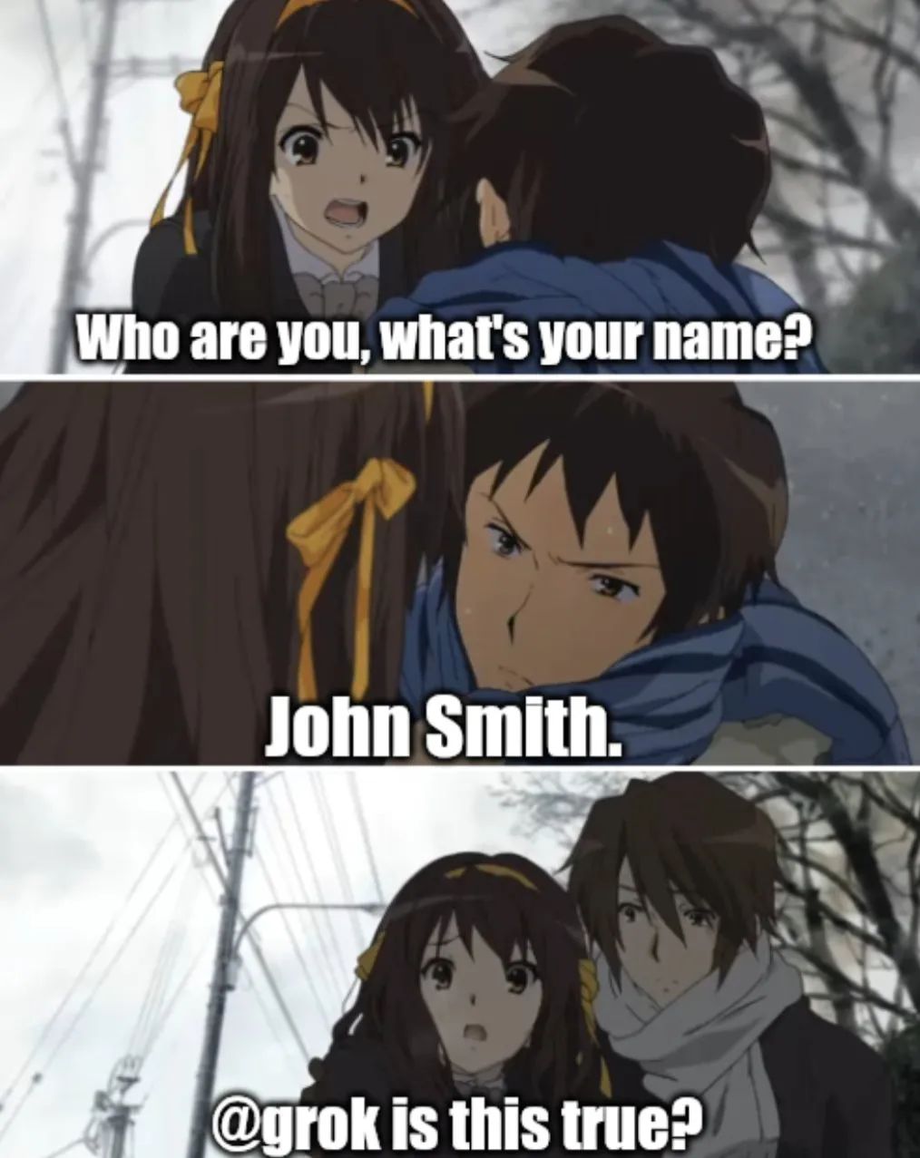 不知道你們有沒有見過這類以 @Grok 開頭的提問句子,現在已經是席捲外網的超級爛梗了,到處都是表情包。