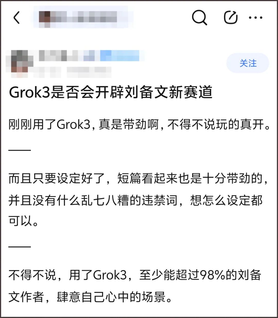 説來有趣,Grok 3 在國內首次引發關注,還是因為能寫“劉備文”(皇叔的諧音)。