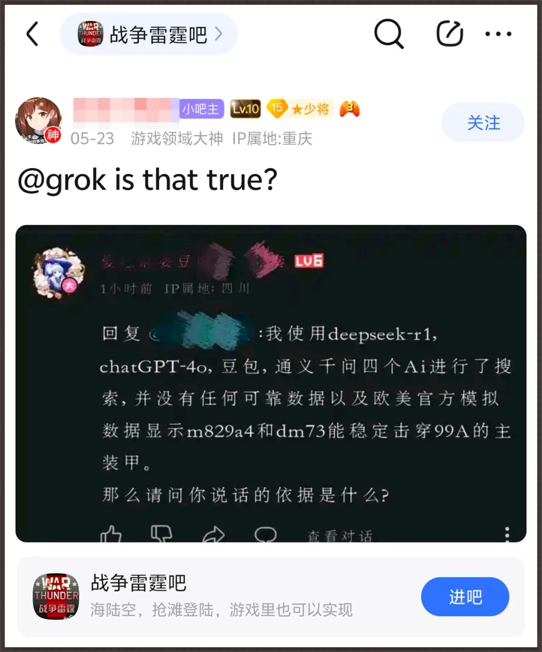 印巴衝突那會兒,阿三在一切不利於印度的新聞底下拼命@Grok,問此事當真。又因為網上到處都是阿三在説“假新聞,不是真的”,於是 AI 很可能也會這樣輸出答案,然後阿三再拿 “Grok查謠”的結果去“闢謠”,反覆加強 AI 的幻覺。