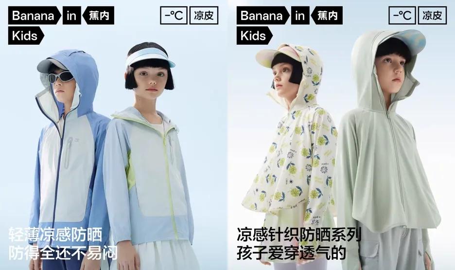 SIIN今年春季推出的新款户外休閒防曬衣,使用“三抗冰皮科技”和仿生羽纖維面料,以實現更涼爽的皮膚觸感;蕉內的涼皮503系列新品,在易出汗部位採用拼接網眼複合面料,改善透氣效果。