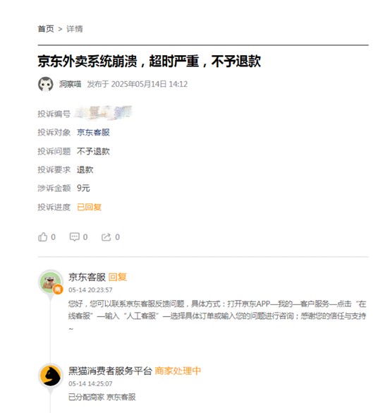 而這已經不是京東外賣系統第一次崩潰了,早在4月22日中午,京東外賣業務就曾疑似崩潰,多位網友表示在京東下單外賣後,商家很久沒有接單。頻繁的系統崩潰,不僅讓用户無法正常下單,也給商家和騎手的工作帶來了極大的困擾,嚴重影響了用户體驗。還有許多消費者反映,在遇到問題後,向京東外賣客服投訴,往往需要等待很長時間才能得到回覆,而且處理結果也不盡如人意。