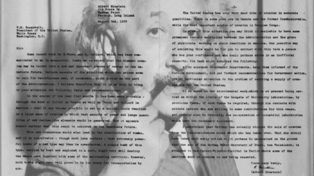 後來西拉德寫了一封信,由愛因斯坦署名,寄給當時美國總統羅斯福。