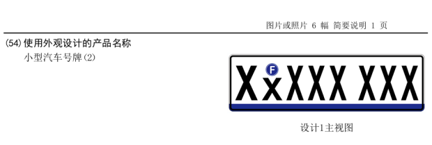 我在查汽車號牌外觀設計專利的時候,發現公安部交通管理科學研究所在2020年申請了兩種小型汽車號牌的設計專利。