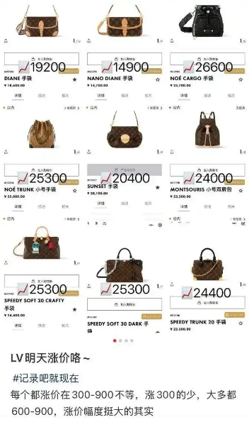 還有LV,早在4月份就傳出要漲價,少則三四百,多則八九百。