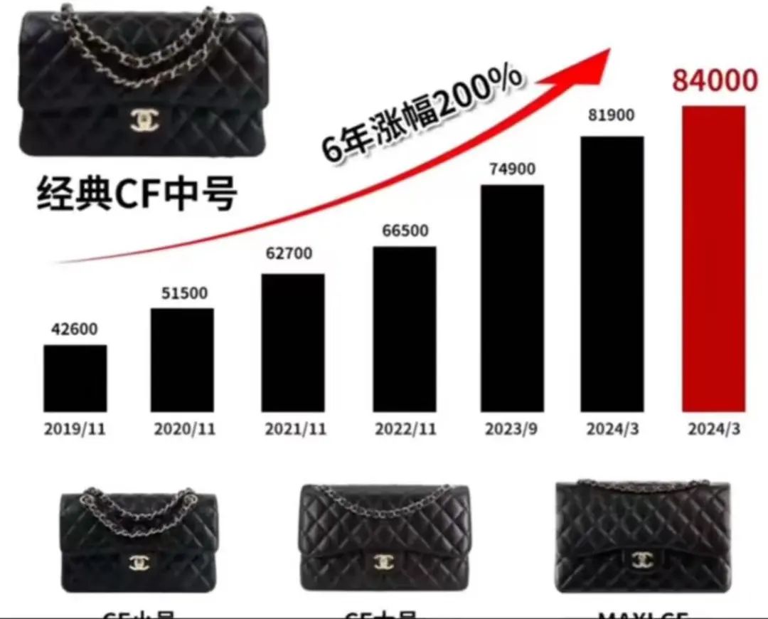 香奈兒的手袋一直在調高售價,截止到去年,它的經典款2.55方包售價已經上漲了120%。
