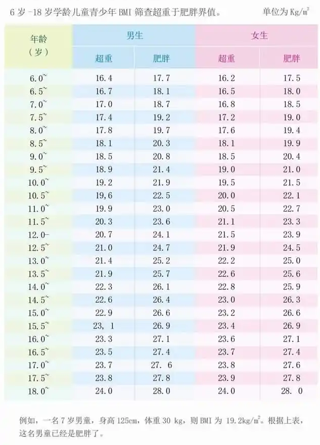 這裏也順便放上上海兒童醫學中心製作的6-18歲學齡兒童青少年BMI篩查超重於肥胖值的表格,各位爸爸媽媽可以看看。