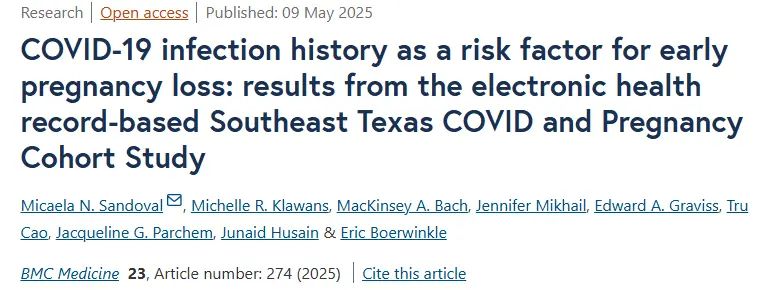 就在這個月——2025年的5月,基於美國德克薩斯州電子醫療檔案的研究顯示懷孕前與懷孕期間感染新冠,都與流產風險增加相關。