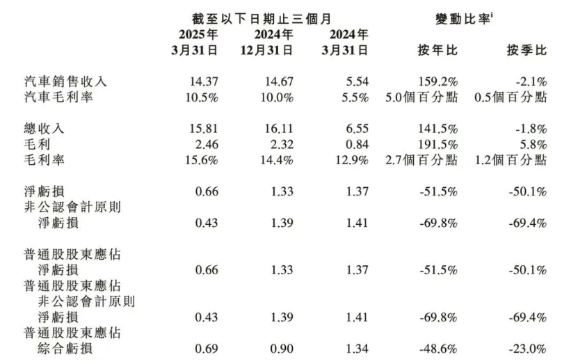 近日,小鵬汽車(以下簡稱“小鵬”)發佈的2025年一季報,也印證了這份底氣。根據財報,小鵬今年一季度營收同比激增141.5%至158.1億元,毛利率攀升至15.6%,淨虧損同比大幅收窄51.5%至6.6億元,創近五個季度最低單季虧損。