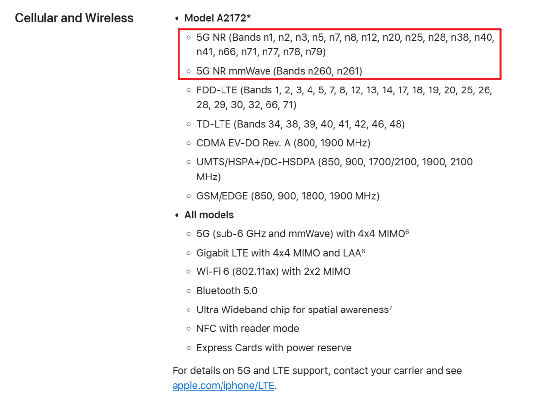 作為參考,從 iPhone 12 系列發佈開始,美版機型就獨家就支持 n260、n261 等 5G 毫米波頻段,其餘美國主流頻段比如 n41、n66、n71,iPhone 也都做到了完整覆蓋,而且它還能通過載波聚合技術提升網速。