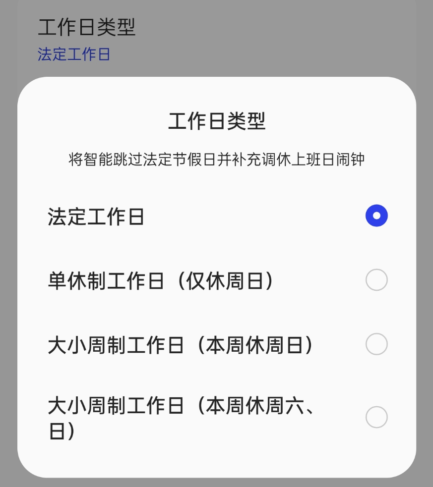 只不過即便到了今年,iPhone 節假日日曆還是不能跟鬧鐘聯動,而國產安卓從 2014 就開始支持同步,陸續上線了工作日鬧鐘,如果忘定鬧鐘,有些手機甚至還會通過推送提示你明天要調休上班,主打一個貼心。