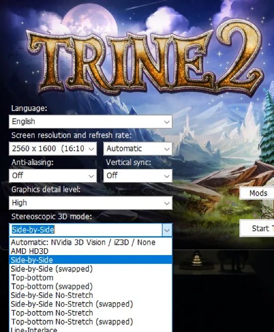 《三位一體2》有着非常齊全的原生3D輸出格式