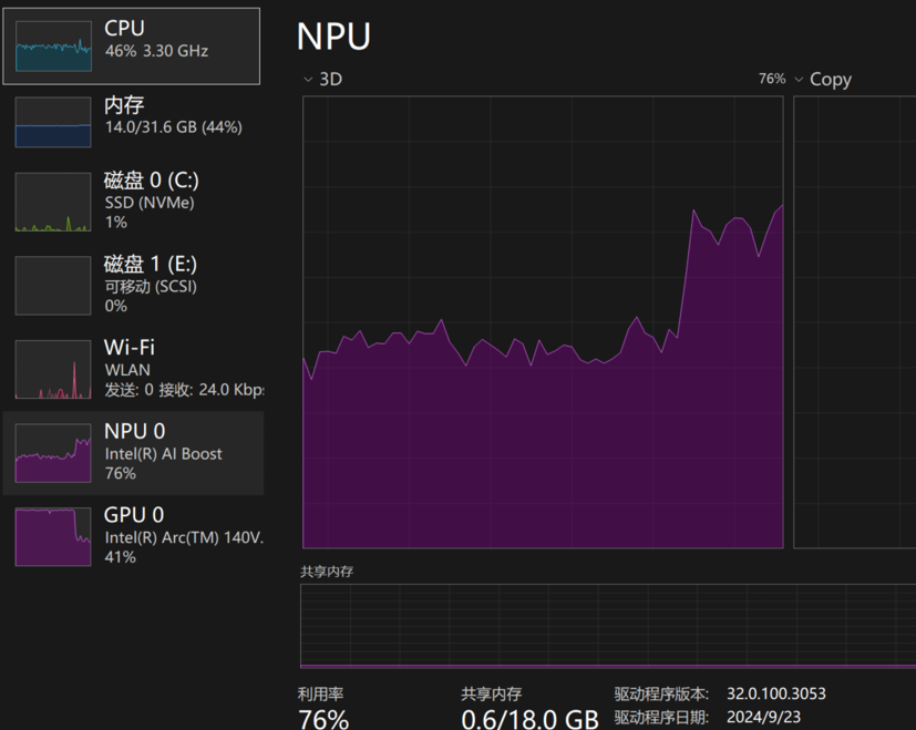 我在入手Lunar Lake筆記本後,還興致勃勃搜了一圈“如何把NPU用起來”,結果敗興而歸——現階段極少有軟件對NPU做過適配優化(可能國外電腦中的Copilot可以調用NPU,有了解的朋友歡迎評論區分享一下),總之空有數據沒有戰場,也難怪外界對AI PC的唱衰之聲不絕於耳。