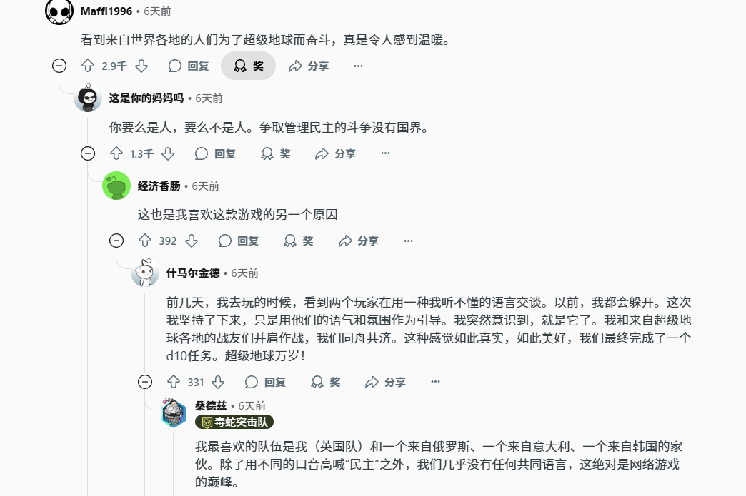 在戰鬥之中,中國和外國的地獄潛兵們不僅通力協助,更是互相之間取得了信任與敬意。