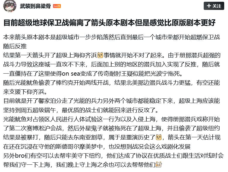 對於運營來説,此時此刻能做的就是兩個選擇,要麼非要按照自己原先的劇本走,讓兩個城市被毀,一切人在榮城決戰(遊戲開發商所在地),這樣雖然結果會朝着自己所想的方向走去,但問題會嚴重打壓遊戲社區對於遊戲的熱情。