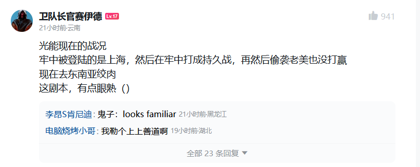 尤其是在這波“仰齊浜城守衞戰”中,“守護上海”的信念激起不少人對於“淞滬會戰”的記憶,記起先輩們為了守護自己家園而浴血奮戰,於是紛紛加入到這場“賽博淞滬會戰”之中。