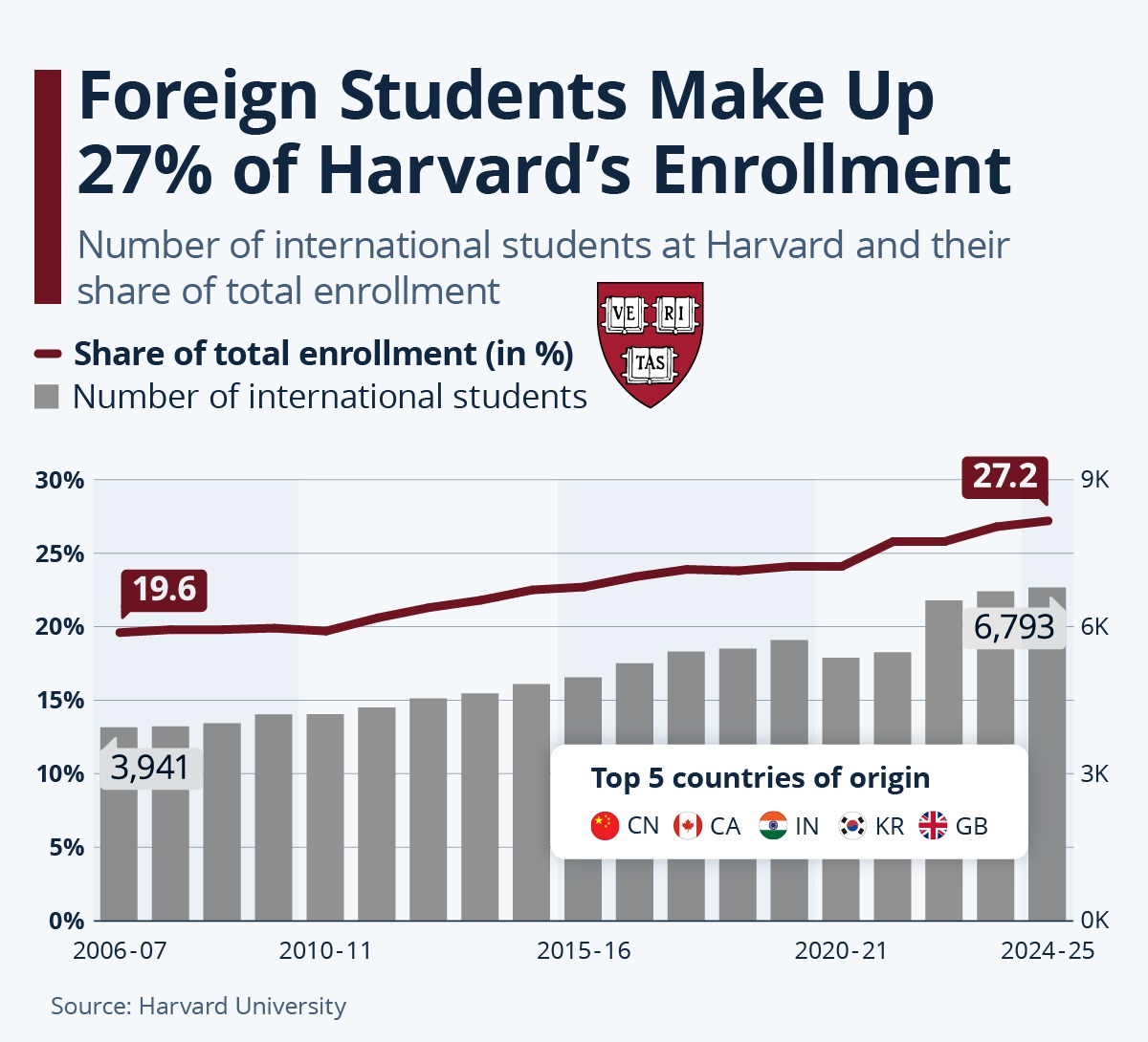 今天傳出的消息是,國務院還覺得外國留學生比例太高了,侵害到了美國學生的權利,現在哈佛國際留學生的比例是27%,他們希望降到15%左右。這其實又是一個大蠢招。極度地傷害美國的利益,他們根本不懂,美國的大學往往是吸引全世界最優秀的學生,他們真的是千金難買的資產。固然有很多世界各國的權貴子弟,也進了名校,但其中花的代價是遠遠超過了普通的美國學生。多少中國富豪為子女在世界名校捐樓、捐款來換取子女的錄取。就是從純粹做生意的角度而言,打擊國際留學生,絕對也是一個虧本買賣。