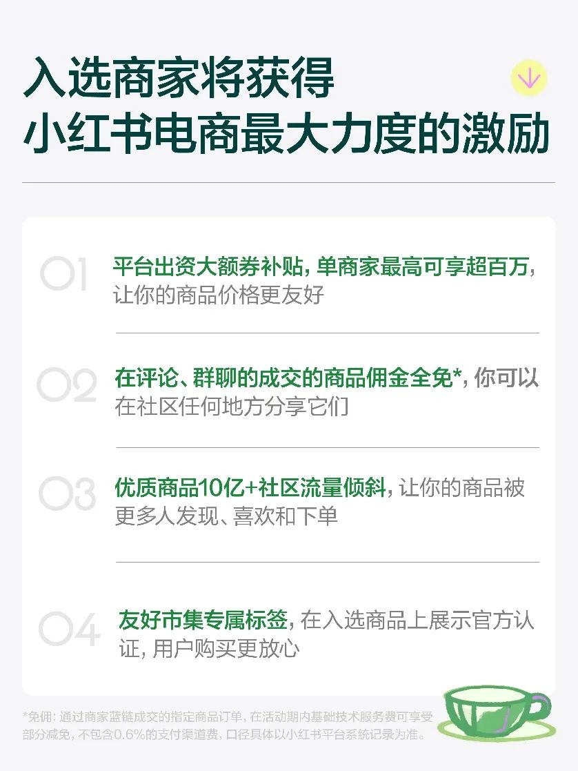 小紅書電商在介紹“友好市集”時特別強調,此次活動為商家提供了“最大力度的激勵”。