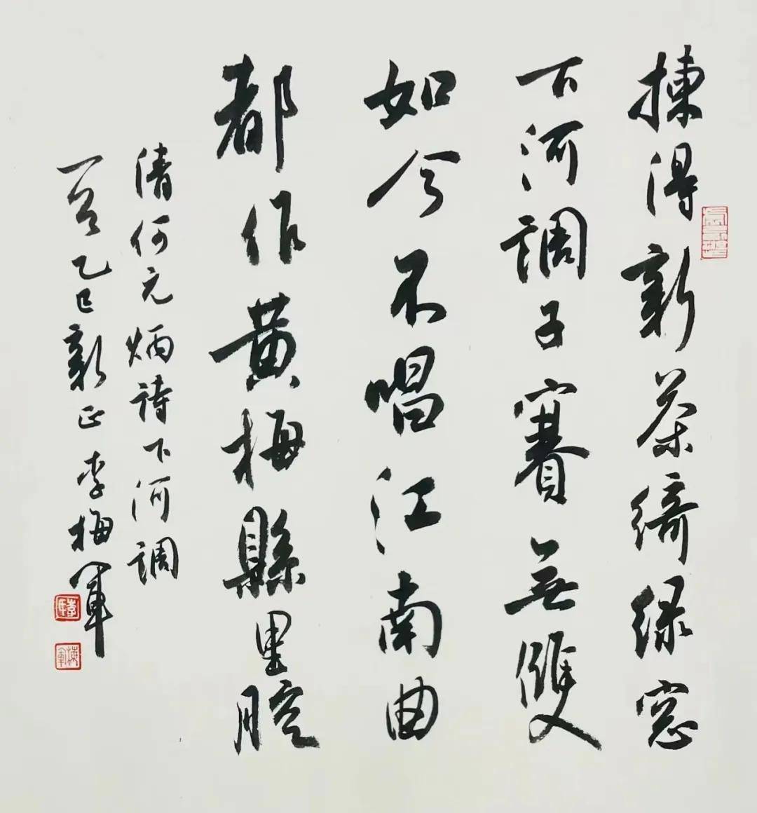 李梅軍,1988年生,湖北黃岡人,如今常居天津,作為天津市第十二屆“文藝新星”,已然成為津門文藝界的中堅力量。他擁有藝術碩士學位,同時身兼多項重要身份:中國書法家協會會員、中國國家畫院盧禹舜工作室畫家、中國文聯2025年文藝兩新高研班成員、中國書協第十一期國學與書法高研班成員、天津市書法家協會第五屆草書委員會委員、天津濱海新區書法家協會副主席,並掌舵天津觀瀾書畫院。