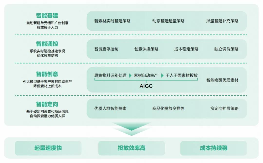 其次是商業化方面,今年的磁力大會上,快手已提出要打造“下一代AI智能商業引擎”,AI能力在營銷各個環節上落地應用,既解決核心痛點,也着力降本增效。