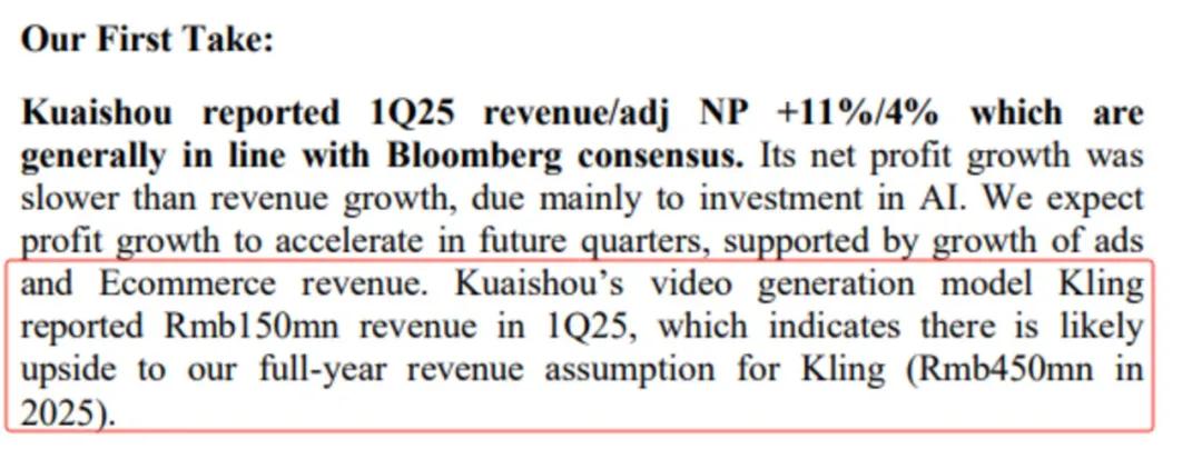 其次,**可靈AI作為戰略重點表現搶眼,**財報中強調其商業化變現加速,2025年第一季度可靈AI收入超過了1.5億元。
