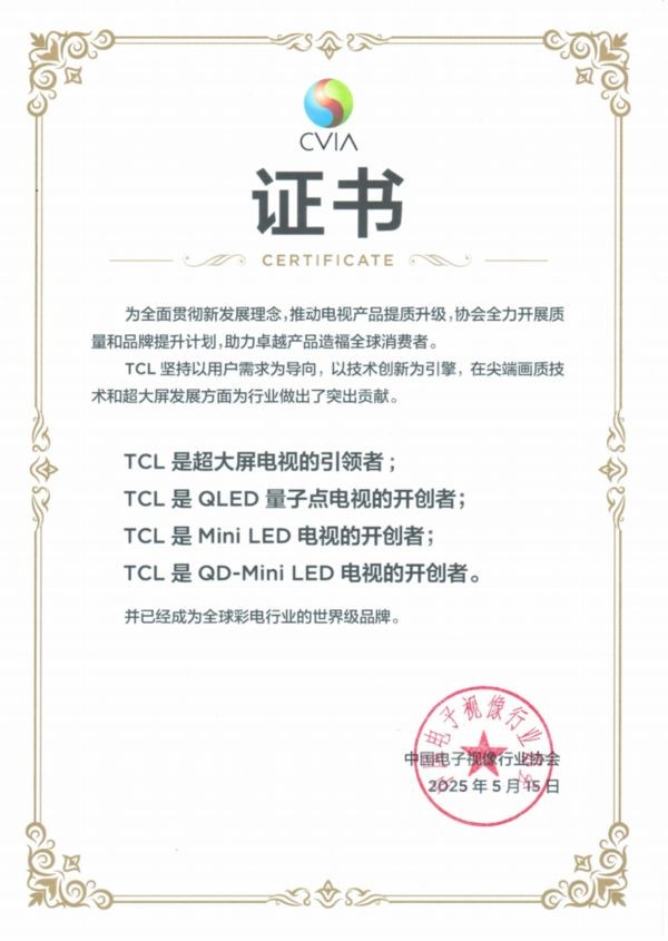 TCL斬獲CVIA多項權威認證,以科技創新領跑全球電視產業-天極網