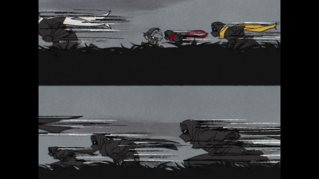 《忍殺日常》的第一集動畫就採用了80年代風格畫面,懷舊的畫風,復古的色調,再加上4:3的畫面比例,這一堆BUFF疊加下來,其實就是為了突出“忍者”這個不符合時代的身份。
