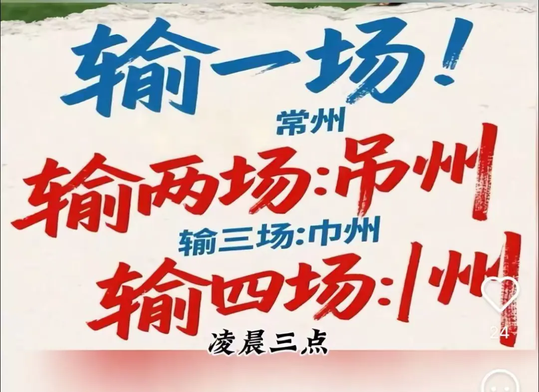 各市足協的主官都對賽果格外重視,生怕連續輸球導致球迷不來看球,比如常州在兩連敗之後,被網友戲稱“吊州都快輸成巾州了”(常州火車站之前霓虹燈壞掉的時候顯示成了吊州,吊州因此成了常州的別稱),這也讓常州足協的相關人員抬不起頭來。