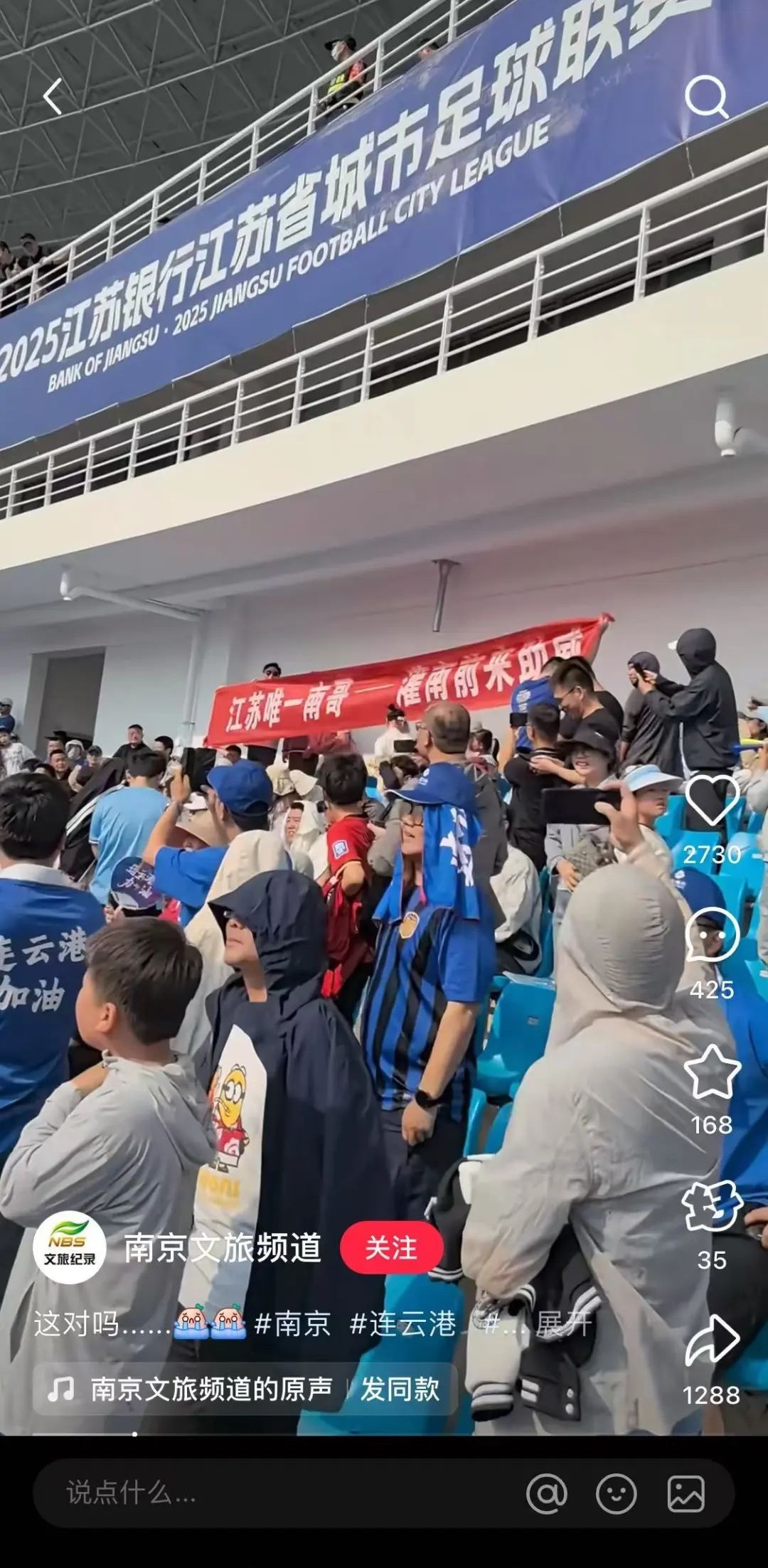 最搞笑的還要數南京與南通的比賽。賽前,這場比賽被視為“真假南哥之爭”,還有南通球迷在網上嘲諷“為什麼江蘇城市聯賽混進來一個安徽球隊”。最終南京主場1比2負於南通,痛失“南哥”身份。這還不是最絕的,有球迷在現場打出橫幅“江蘇唯一南哥前來助陣”,這夥球迷來自灌南縣(隸屬連雲港)。