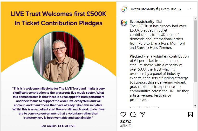 比如英國政府近期推出的“UK Live Trust”基金,從大型演出門票中每張抽取1英鎊,以資助小型音樂空間的可持續運營。截至今年5月,該基金已籌得逾50萬英鎊,Diana Ross、Pulp、Hans Zimmer等重量級藝人亦參與其中,成為結構重塑中的推動者。