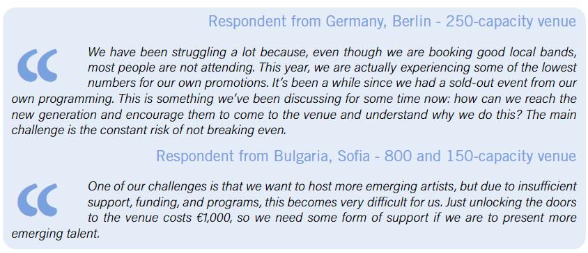 今年2月,歐洲演出組織Live DMA發佈的《歐洲城市現場音樂的挑戰》指出,歐洲諸如柏林、索菲亞等地的中小型演出空間,正因收入鋭減與公共資助減少,陷入生存危機。這一趨勢若持續,將從根基處破壞現場音樂生態的多樣性與可持續性。