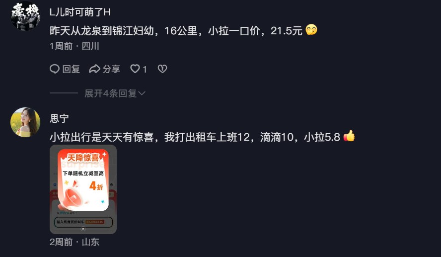 小拉出行的模式本質上避開了與頭部平台的直接競爭,聚焦價格敏感、非高頻用户羣體,通過拓展增量市場激活潛在需求,成為網約車行業市場增量空間的撬動者。