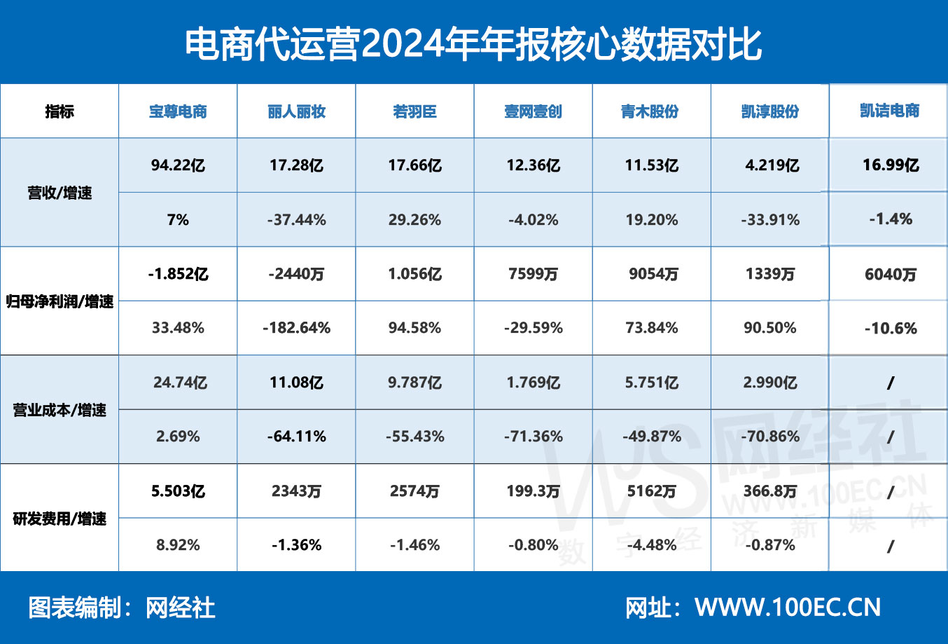 而麗人麗妝營收同比跌37.44%至17.28億元,壹網壹創(12.36億元,-4.02%)和凱淳股份(4.22億元,-33.91%)同樣面臨收縮壓力。值得注意的是,部分企業如凱淳股份在營收下滑時通過成本管控實現利潤倍增,反映出行業正從規模擴張向效率提升轉型。總體而言,電商代運營行業已進入結構性調整階段,企業戰略差異導致業績分化加劇。