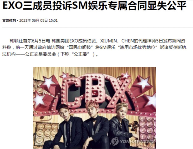**經營權雖然塵埃落定,但SM娛樂的內部問題非但沒解決,還****愈演愈烈。**2023年6月,韓國男團EXO成員伯賢、XIUMIN、CHEN通過政府信訪網站“國民申聞鼓”投訴SM娛樂“濫用市場優勢地位”,公開了令人震驚的“霸王條款”細則。